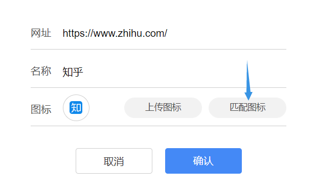如果部分图标不能正常显示,请点击编辑网站,在编辑网址的菜单上点击“匹配图标”重新获取网站图标。